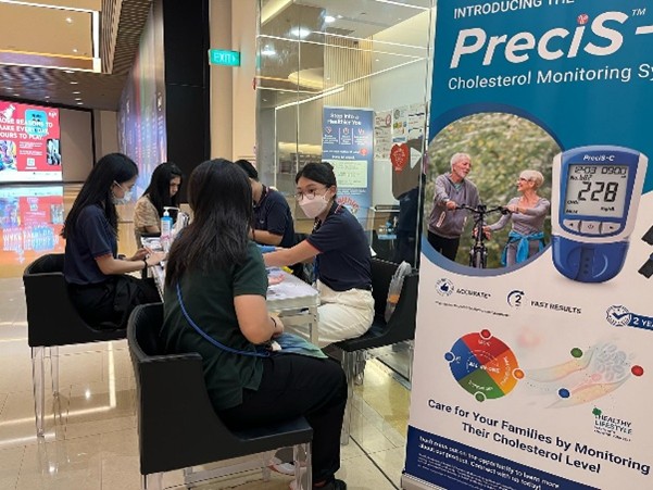 The screening was held at Marina Bay, located in one of Singapore’s busiest business districts, the Downtown Core. This initiative aimed to make preventive care more convenient and accessible. To support this, we conducted cholesterol screenings by using the PreciSTM-C Cholesterol Monitoring System (Cholesterol Management).